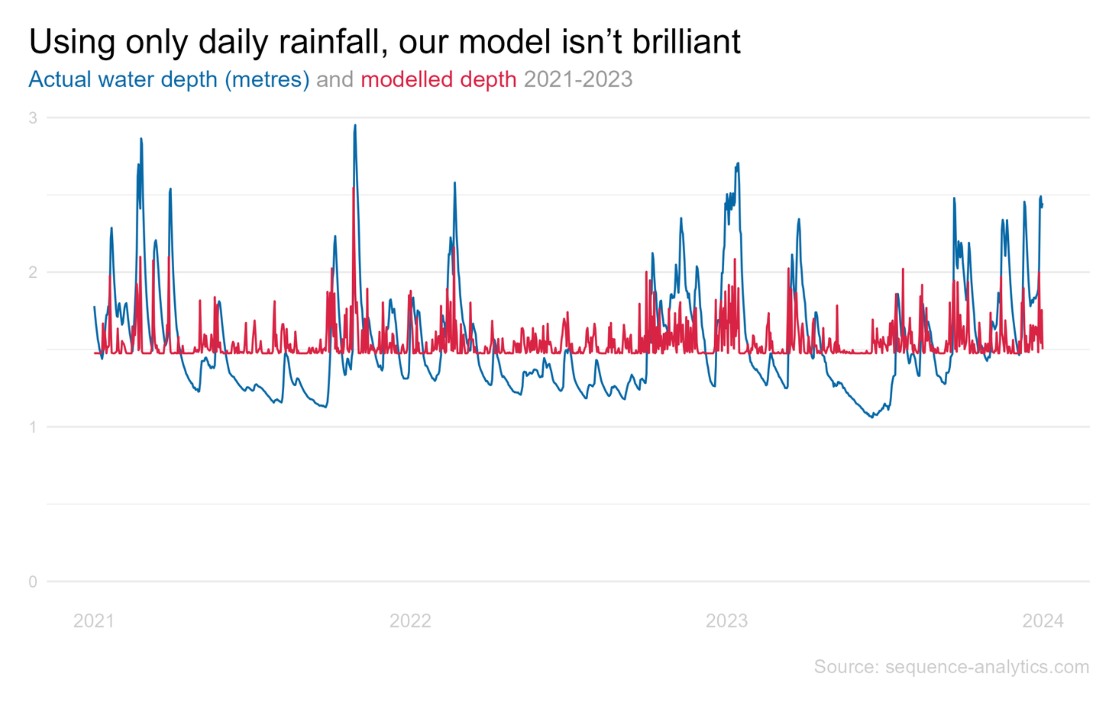 It's obvious to us that the depth of water rises when it rains so why does our new model not really work?