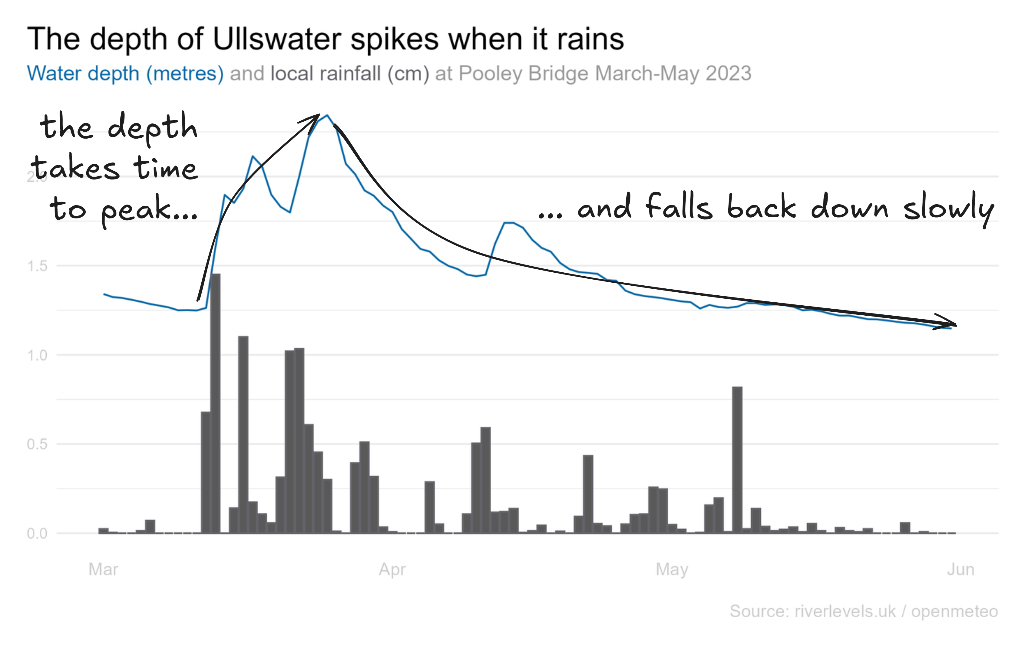 Of course we already know that rainfall will end up in the lake and if we grab the data and chart it then that's exactly what we see.